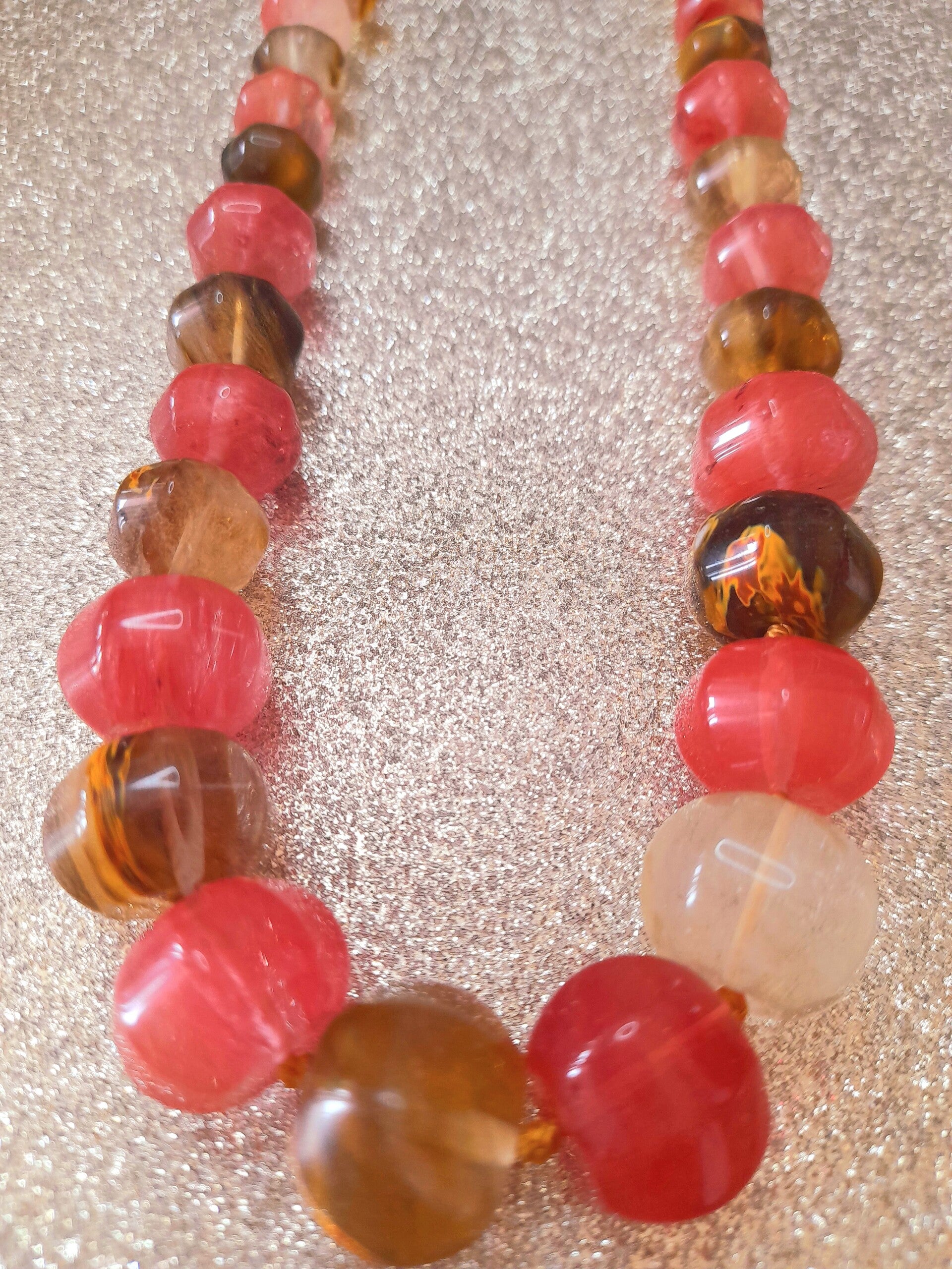 Collier élégant en Pierres Naturelles de Quartz rose et Quartz Fumé. Un dégradé de couleurs et de tailles.